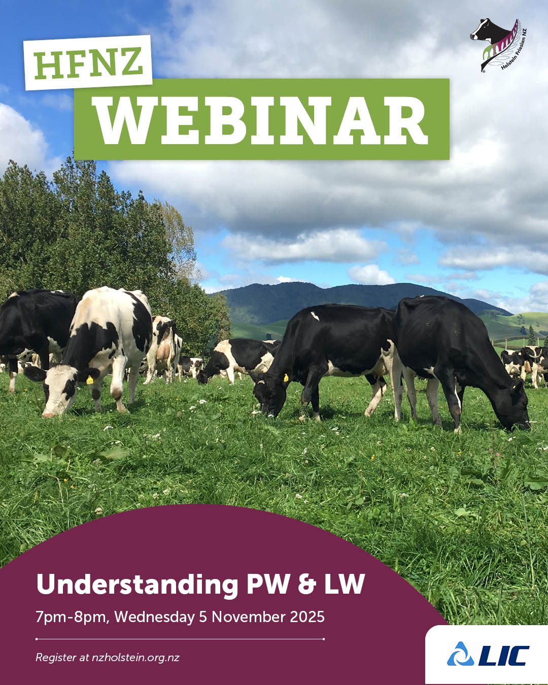 Join us on Wednesday, 5 November 2025 at 7:00 PM for our HFNZ Webinar, Understanding PW & LW, featuring Rachel Bloxham, Herd Improvement Technical Manager at LIC.